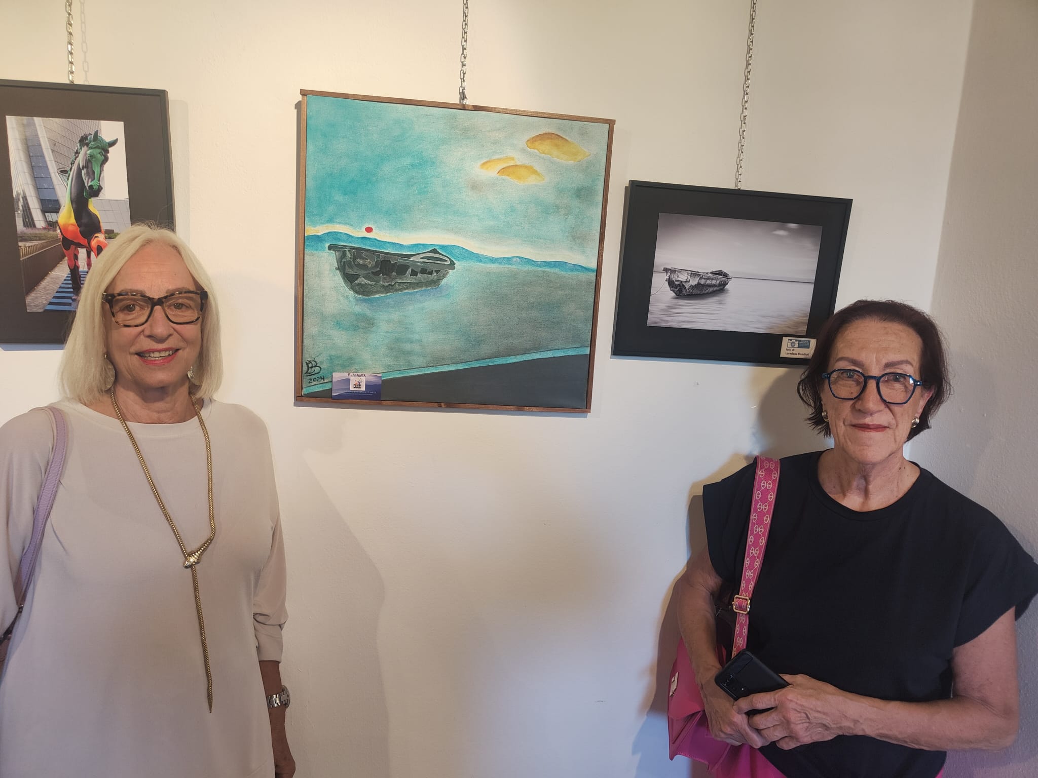 La pittrice EMMA BAUER e la fotografa LOREDANA BONDIOLI di fronte alle loro opere